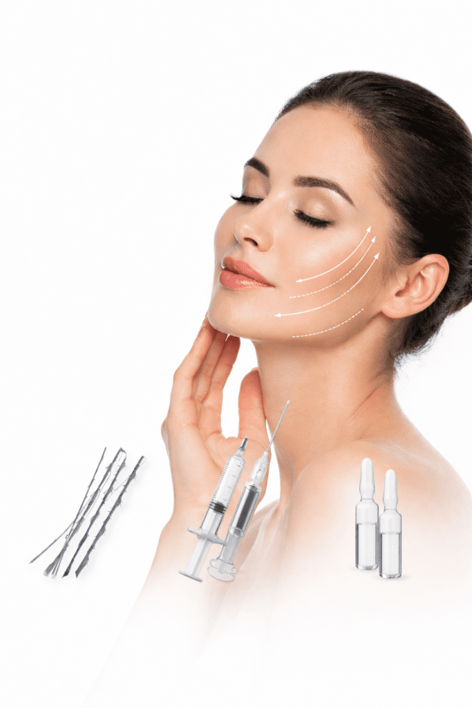 Our advanced lifting and contouring treatments are designed to restore youthful definition without surgery. Using PDO threads and cannula-based dermal filler techniques, we lift sagging skin, redefine facial contours, and stimulate natural collagen and elastin production for instant yet natural-looking rejuvenation. Ideal for concerns such as jowls, nasolabial folds, mid-face volume loss, and facial sagging, these treatments deliver long-lasting results with minimal downtime.